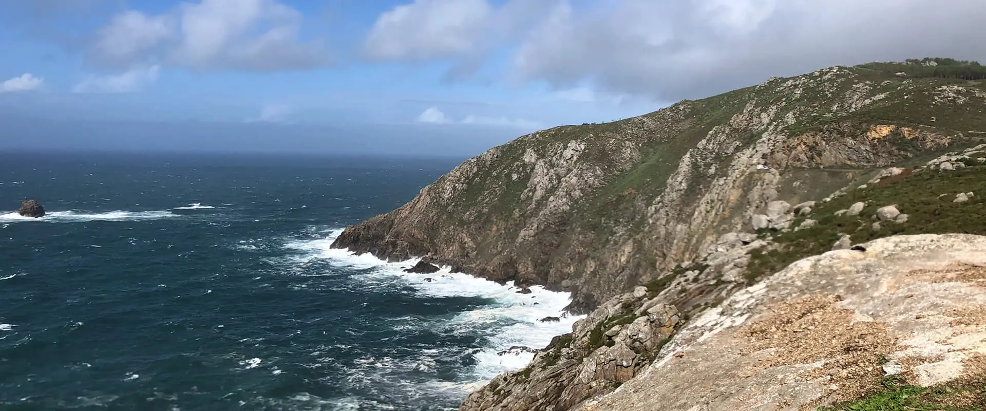 The trail starts in Santiago de Compostela from its official office where you can get your pilgrimage passport. From there, you go west and you’ll soon leave the city center and see the first milestone of the trail. You’ll encounter a lot of them on the trail which is very motivating because they tell you how many kilometers are still to go. The Spanish name is Finisterra, but in Galicia they call it Fisterra, that’s why most of the time you’ll see this pronunciation.