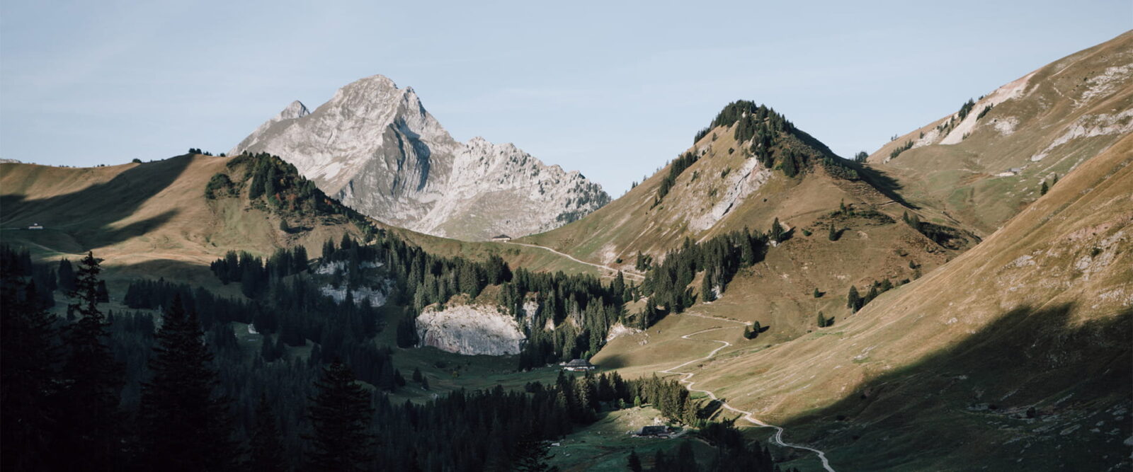 For the last stage of this tour, you backtrack for a few kilometers. At a lower altitude, and – if you’re lucky – after spotting some more chamois, you round the mountain. You’ll enter another valley, with green mountain slopes and peaks, and in the far distance, the white cap of the Mont Blanc. You’ll gently descend over the green mountain slope. The closer to the town of Château-d’Oex you get, the more cattle, farms, and people you’ll see. Château-d’Oex is known as the hot-air balloon town, and if you time your visit well, you might see colorful balloons rise between the mountains.