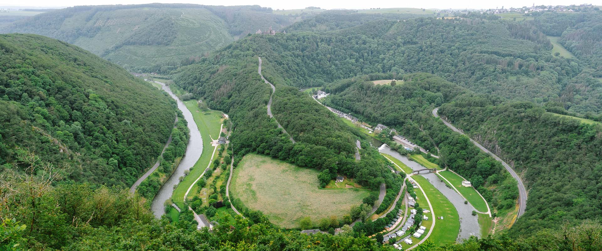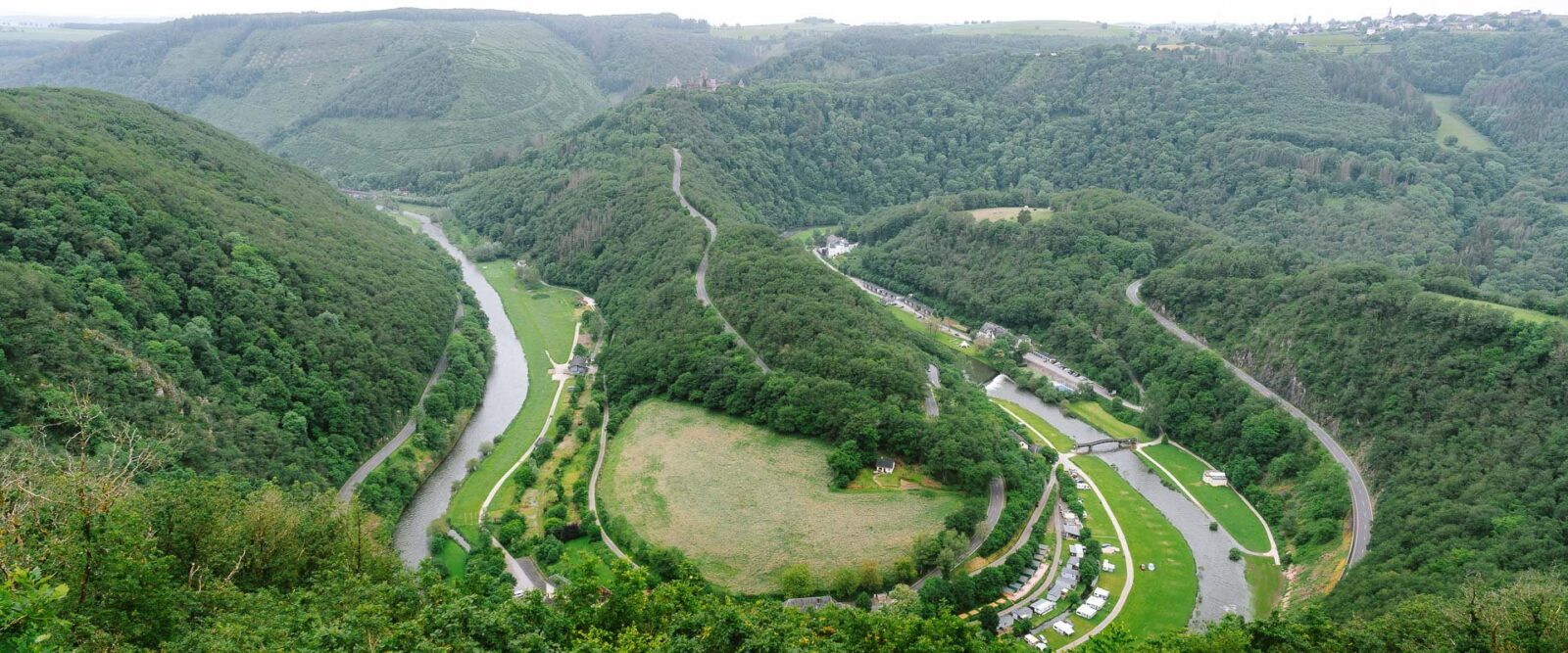 The second stage will take you 14 kilometers to Bourscheid-Moulin. If you stayed the night at the campsite, you cross the road and immediately rise considerably into a forest. There are a lot of small paths with high grass (please make sure to check regularly for ticks!). After climbing a lot you descend to a little cafe next to a waterfall. The perfect time and place for a coffee break. There’s a big chance you’ll see multiple fishermen, even in the waterfall itself. After your refuel, you will alternate walking through nature and along the road next to big cane fields. At the highest point of this stretch, there is a big old tree that was planted in 1811 in honor of the birth of Napoleon’s son. Next up there are nice parts to descend. If the water level is really high, you’ll get to a path near the campsite that’s fully underwater. You can either choose wet feet or climb a little through the side of the hill, but that’s at your own risk. The last part is just hiking along the river and train tracks.