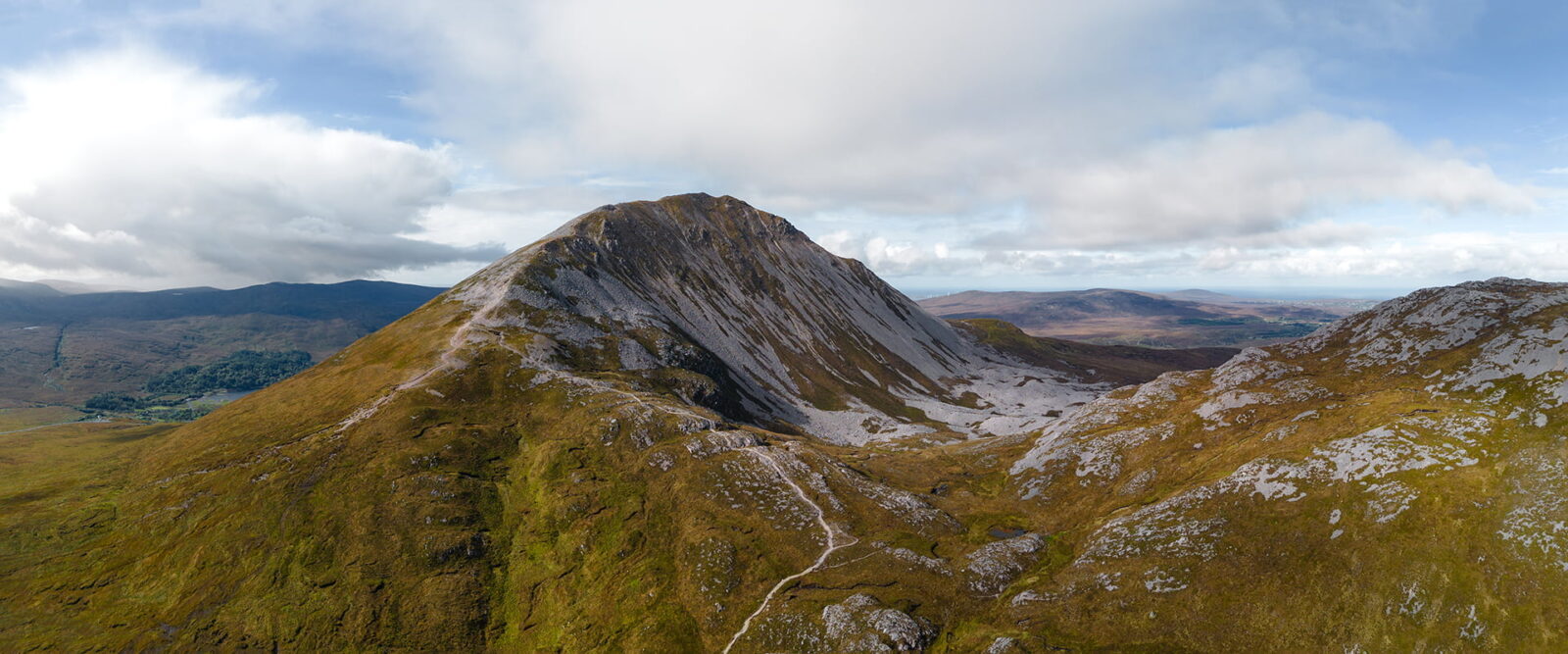 The trailhead is located in Dunlewey and you’ll start at the Errigal Mountain Hike Parking Base Camp. It’s a popular hiking area, so you’ll encounter other people during this trail. The well-marked path leads you gently uphill. As you ascend, the outline of Mt. Errigal dominates the skyline. This is a hike along the Wild Atlantic Way. Find out more about how to get there on our dedictated Wild Atlantic Way page.