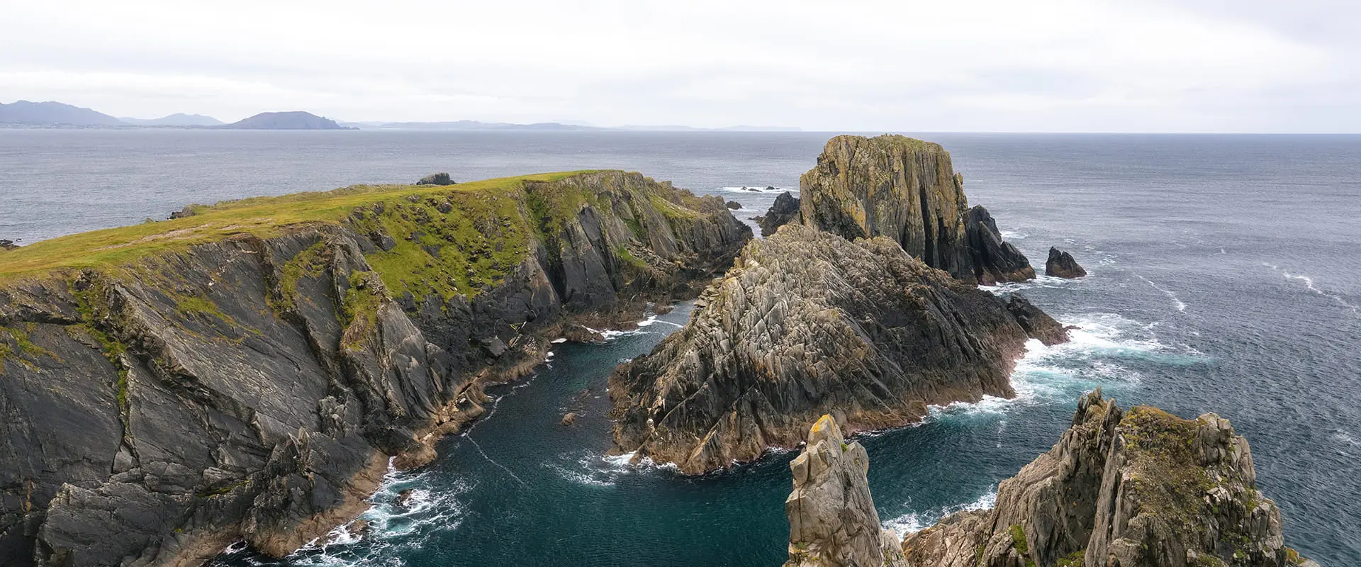 Starting at the small car park, you’ll pass historic and natural highlights, such as the large stone “Eire” sign. This was used during WWII to mark Ireland’s neutrality. When you walk further, you’ll encounter Hell’s Hole. You’ll be amazed by this impressive 30-meter deep chasm carved by the ocean’s force. A unique geological location. Mailin Head is also the beginning or the end of the incredible Wild Atlantic Way. Find out more about this scenic coastal drive with many hikes along the way on our Wild Atlantic Way page.